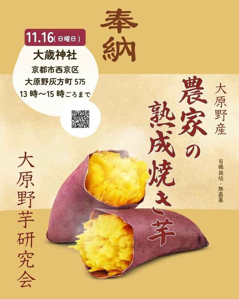 【嘉味特製の農家の熟成焼き芋】をふるまいにて出店させていただきます。