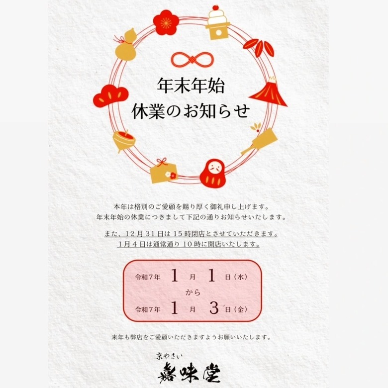 京やさい嘉味堂は12/31の15:00まで営業いたします!