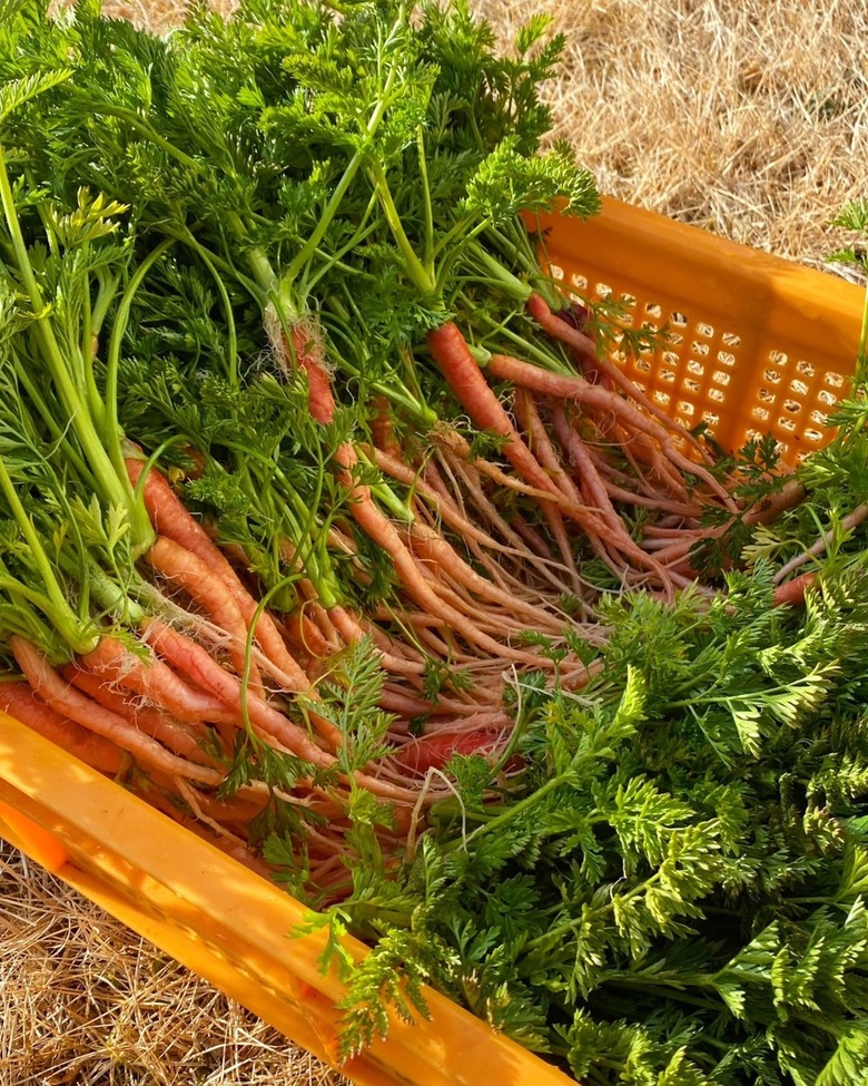 2025.02.24 農場から 京かんざしが採れました 京かんざしは金時人参を早採りした物で まるごと美味しくお召し上がりいただけます。 葉は香りよく爽やかな緑色をしており、 鮮やかな紅色の根とのコントラスも美しく、 刻んでサラダにしたり、炒め物、揚げ物、煮物等、 いろいろな料理にお使いいただけます!! 洋食にも良く合います☆ 店頭に並んでおりますので、ぜひ、お試しください。 お知らせ一覧へ戻る